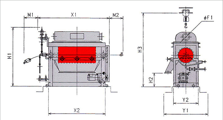 从两只加热的滚筒上部供给原料。在滚筒上面预热的原料,一边附着在滚筒表面,一边形成与内回转的滚筒之间的间隙对应的厚度的薄层,干燥后,最后被刮刀刮落。该型号适用于有一定粘度的脱水滤渣和污泥的干燥。